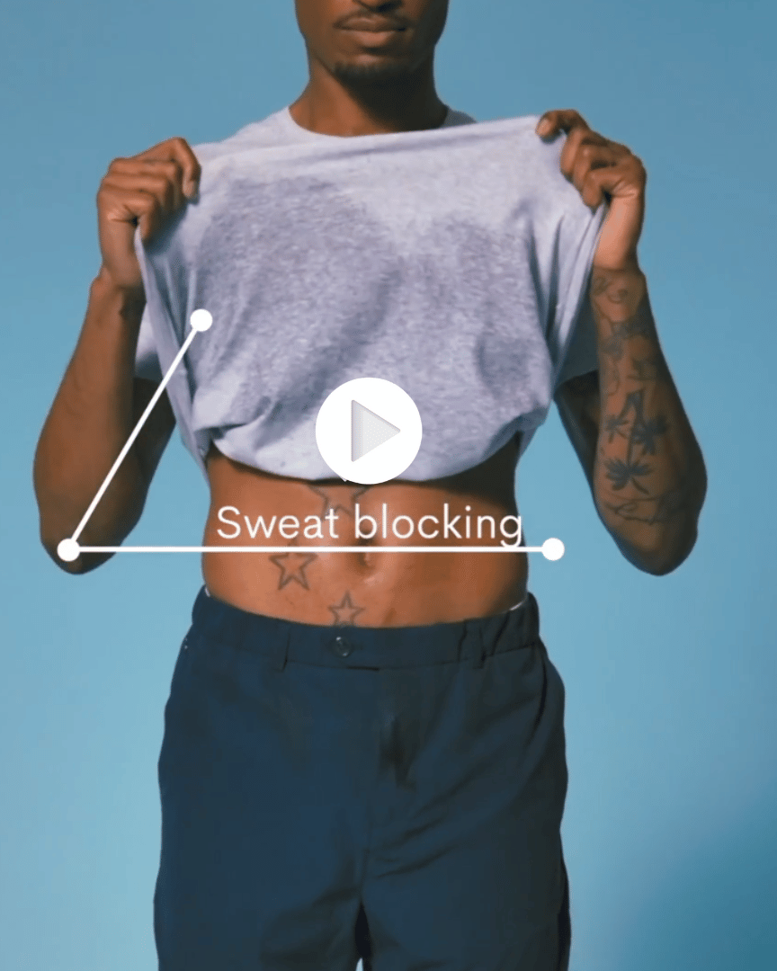 Disclaimer: White fabrics are hard to hide sweat stains with, as it’s naturally transparent as a colour. If you sweat a lot, we suggest another colour for the optimal sweat blocking results - like light grey!