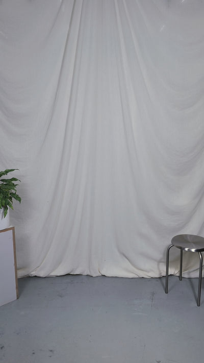 Two people sitting on a stool in a studio setting with photography equipment.