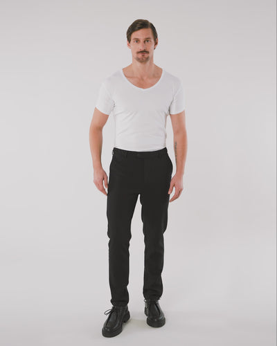 Dank des weiten V-Ausschnitts ist das Unterhemd unter einem Hemd unsichtbar.